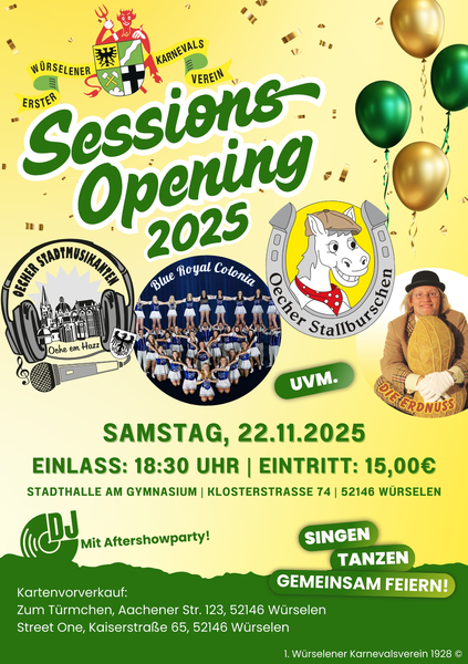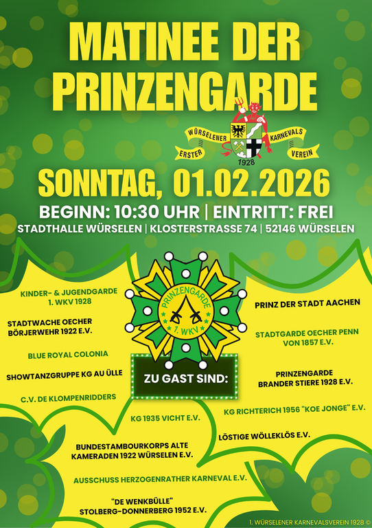 Karten für die einzelnen Veranstaltungen erhaltet ihr bei den angegebenen Vorverkaufsstellen oder über die Geschäftsstelle des 1. WKV 1928